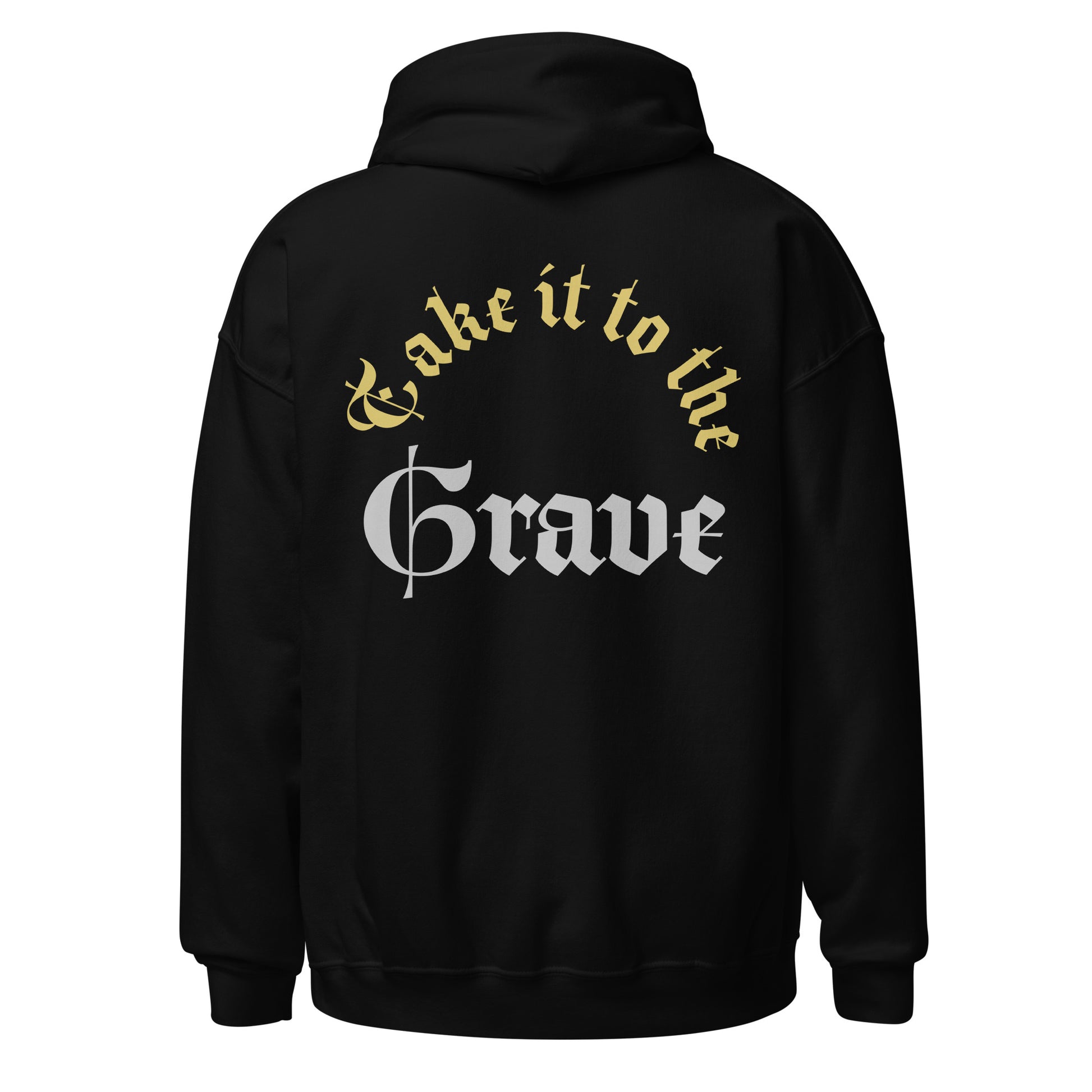Introducing our "Take it to the Grave" Hoodie — a perfect blend of comfort and understated style for those who appreciate a hint of mystery. Crafted from ultra-soft, premium fabric, this hoodie offers a relaxed fit that's ideal for everyday wear. The front remains simple and classic, while the back adds a touch of intrigue with its bold statement, "Take it to the Grave," in a mix of elegant gold and clean, modern white lettering.